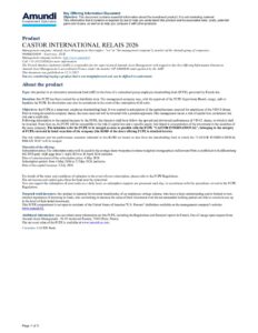 Key Information Document FCPE Castor International Relais